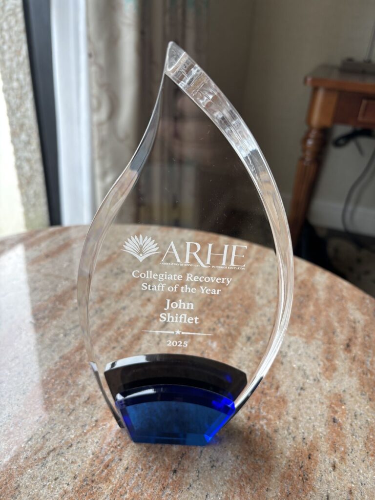 Recently, John was selected by his peers to receive the Staff of the Year award at the Collegiate Recovery National Conference in New Orleans, an honor that reflects his tireless commitment to building recovery-friendly campuses and creating communities where students can thrive.